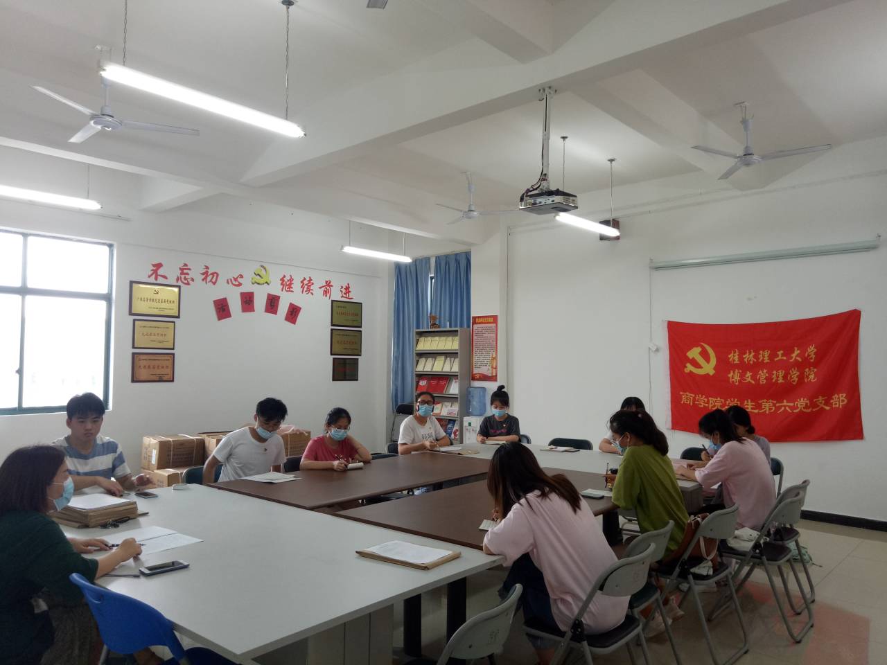 7月2日下午,商学院学生第六党支部以“迎党的生日、讲战役故事、悟初心使命”为主题在1410会议室召开组织生活会。会议由李贵金书记主持,全体在校党员参加。