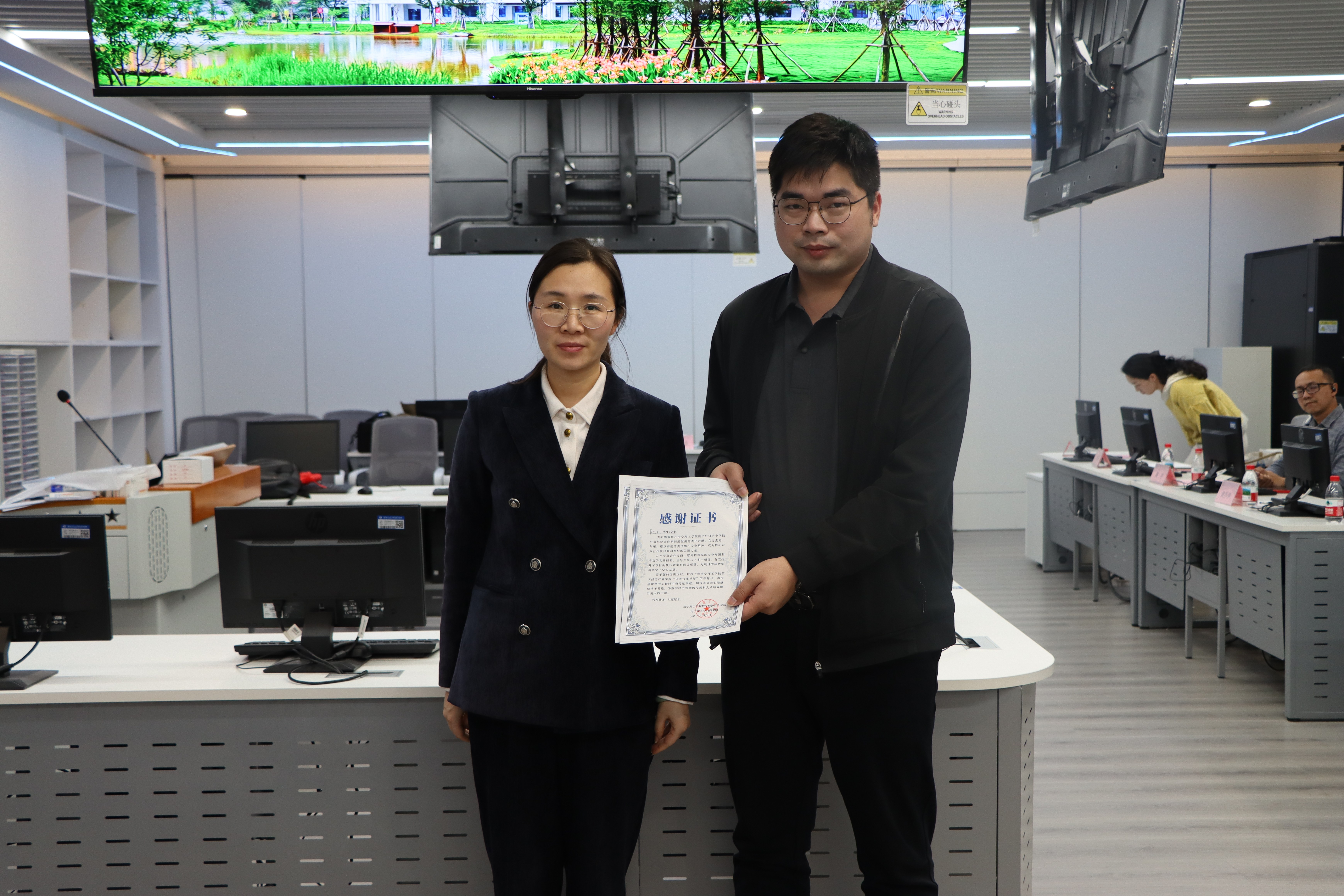 活动尾声,学院领导为企业嘉宾及校内合作教师颁发“校企合作共建单位突出个人”证书,以感谢他们对校企协同育人工作的贡献。全体参会人员合影留念后,专业负责人再次向各方致谢,沙龙在热烈而温馨的氛围中圆满结束。