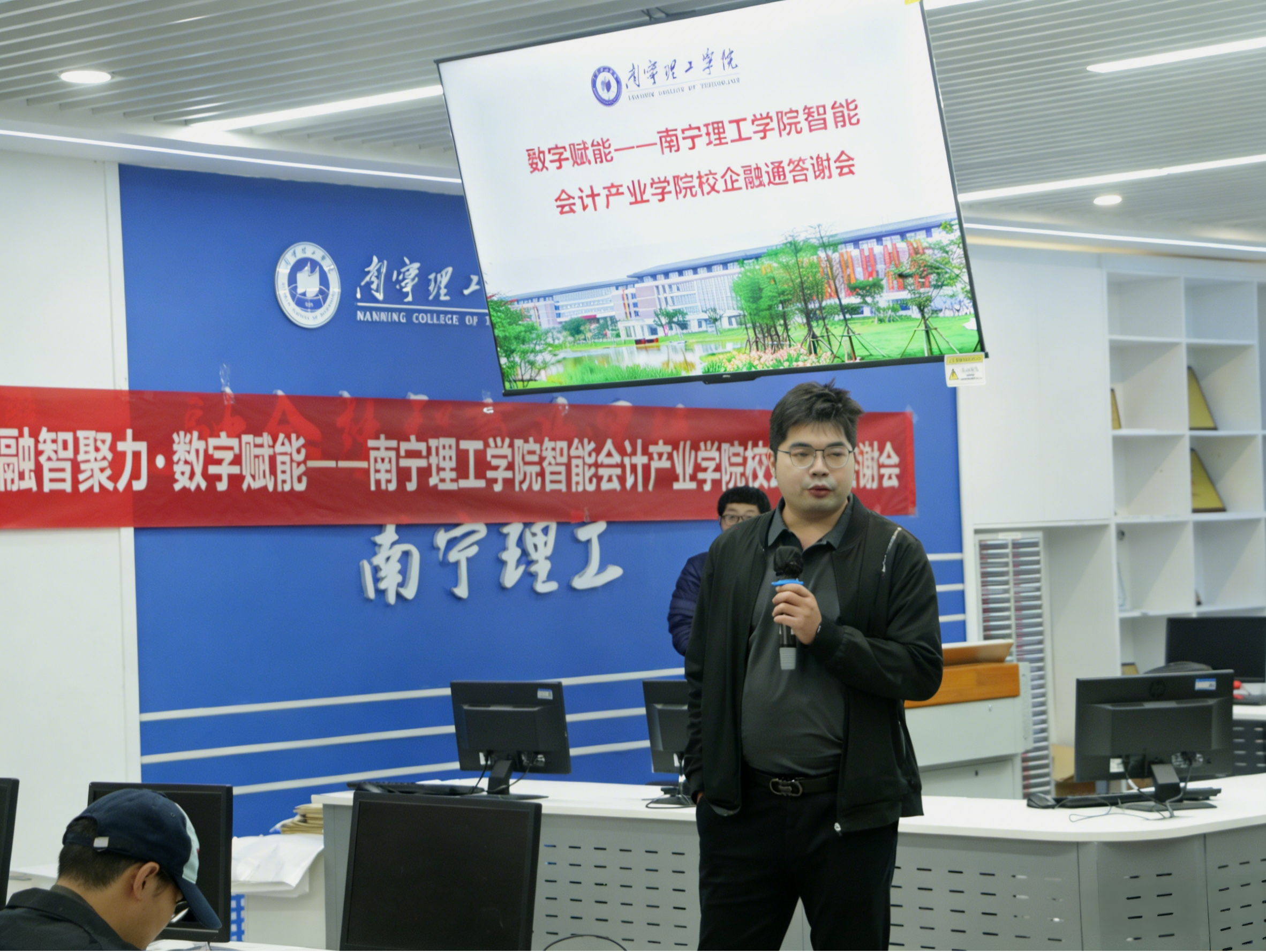 12月30日,在智能会计产业学院的支持下,南宁理工学院商学院主办的“融智聚力・数字赋能”校企融通沙龙在学校商科综合实训中心成功举行。本次活动聚焦智能会计背景下的商科人才培养,邀请行业专家、学术导师与在校学子共聚一堂,围绕行业发展、人才需求与校企协同等议题展开深入交流,旨在搭建常态化对话平台,推动教育链、人才链与产业链的有机衔接。